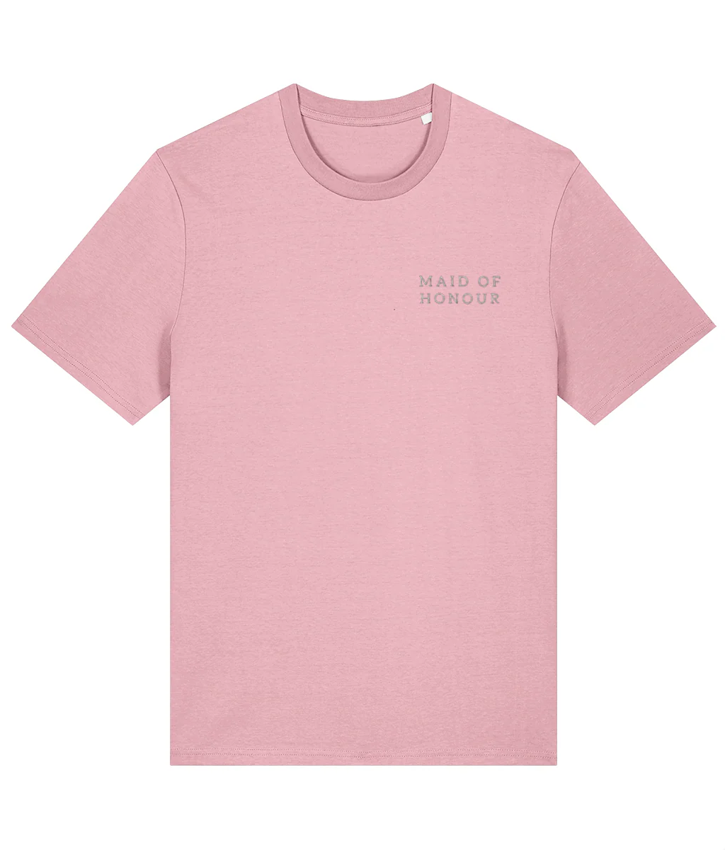 Maid of Honour Embroidered T-Shirt | Cotton Pink Bridal Party Tee